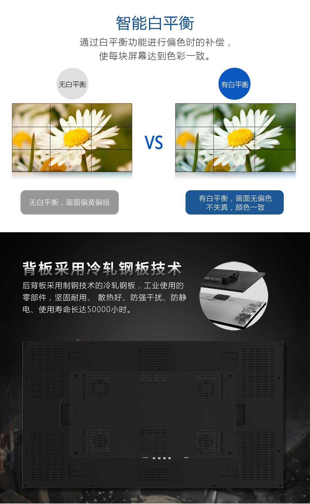 ◆ 色彩均勻,圖像穩(wěn)定,專為拼接大畫面定制功能;